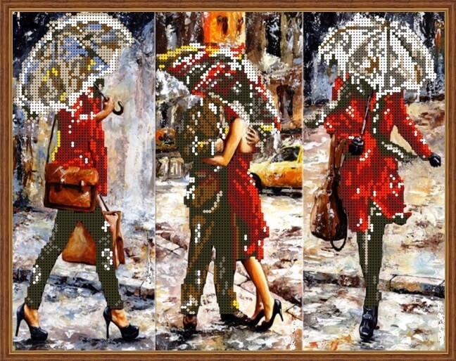 Схема для вышивки бисером Триптих под дождём ТМ I.B.Studio выполнена на габардине, бродублированном флизелином и с прооверлоченными краями. Формат А3. Количество цветов бисера - 10.