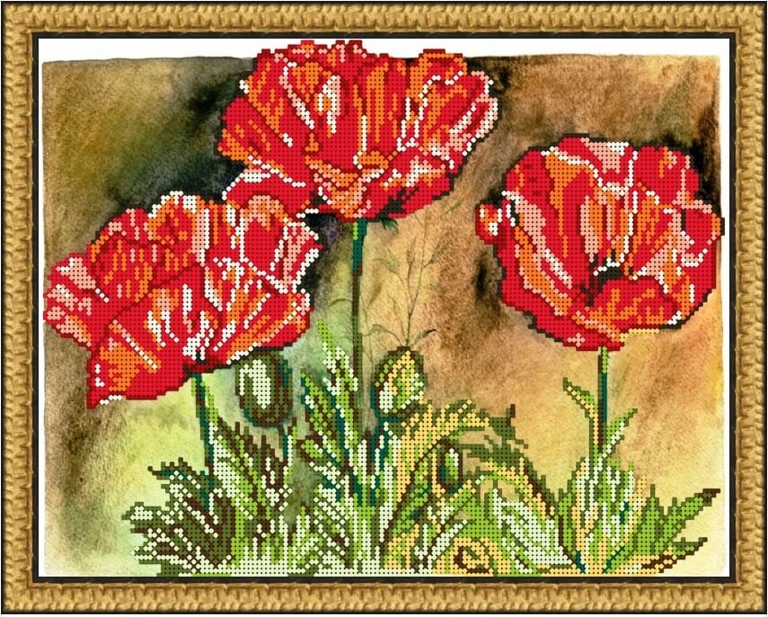 Схема для вышивки бисером Три мака, 27х34см, Б-3232, I.B.Studio