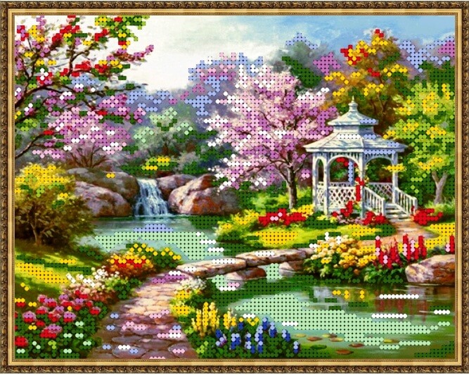 Схема для вышивки бисером Цветущая сакура ТМ I.B.Studio выполнена на габардине, бродублированном флизелином и с прооверлоченными краями. Формат А4. Количество цветов бисера - 10.