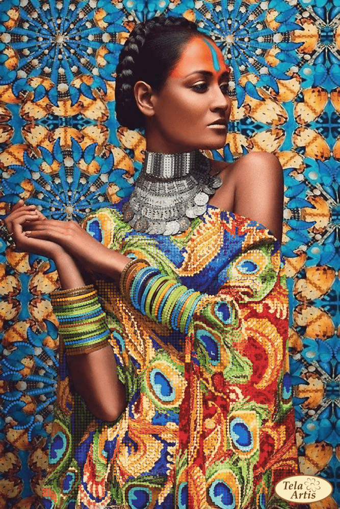 Схема для вышивки бисером Африка-3 выполнена на плотном атласе, продублированном флизелином. Края всех схем Тэла Артис запаяны и не сыпятся в процессе вышивания. На схеме указаны количество и рекомендуемые цвета бисера Preciosa.