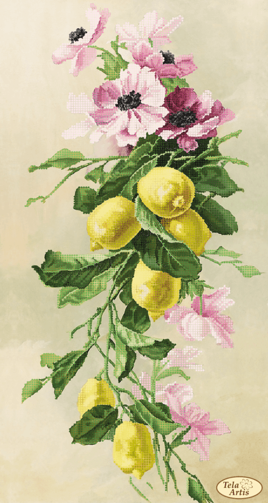 Схема для вышивки бисером Букет с лимонами выполнена на плотном атласе, продублированном флизелином. Края всех схем Тэла Артис запаяны и не сыпятся в процессе вышивания. На схеме указаны количество и рекомендуемые цвета бисера Preciosa.