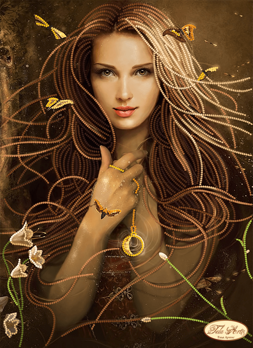Схема для вышивания бисером Ведунья выполнена на плотном атласе, продублированном флизелином. Края всех схем Тэла Артис запаяны и не сыпятся в процессе вышивания. На схеме указаны количество и рекомендуемые цвета бисера Preciosa.