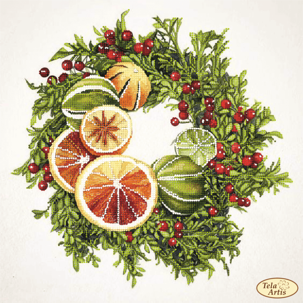 Схема для вышивания бисером Венок с грейпфрутом, ТА-439, 30х30см, Тэла Артис