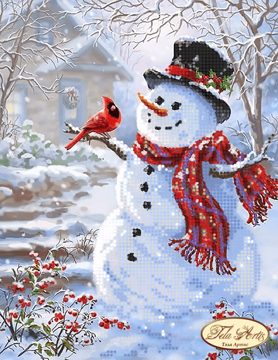 Схема для вышивания бисером Веселый снеговик, 17х22см, ТМ-058, Tela Artis
