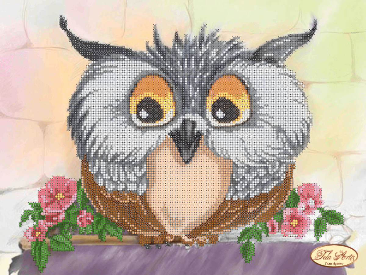 Схема для вышивания бисером Веселый совенок выполнена на плотном атласе, продублированном флизелином. Края всех схем Тэла Артис запаяны и не сыпятся в процессе вышивания. На схеме указаны количество и рекомендуемые цвета бисера Preciosa.