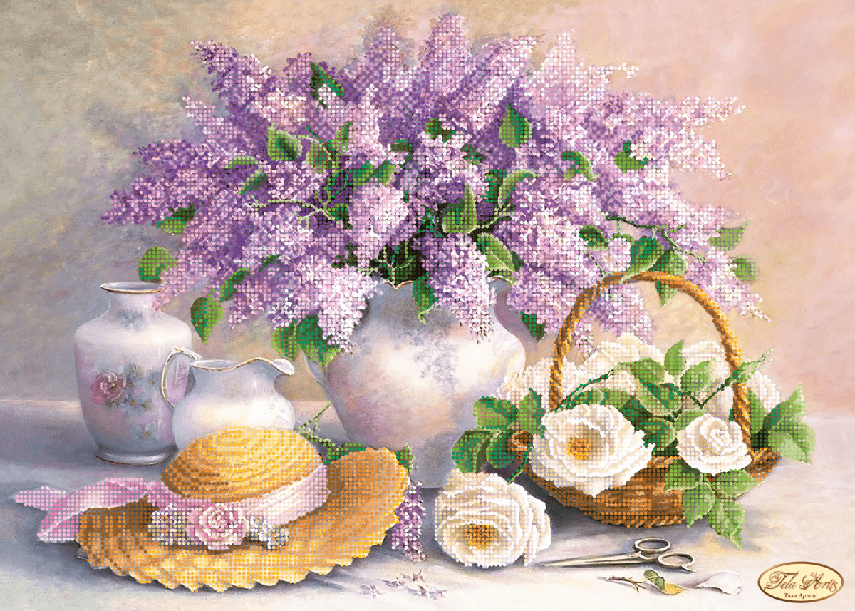 Схема для вышивания бисером Весенний натюрморт выполнена на плотном атласе, продублированном флизелином. Края всех схем Тэла Артис запаяны и не сыпятся в процессе вышивания. На схеме указаны количество и рекомендуемые цвета бисера Preciosa.