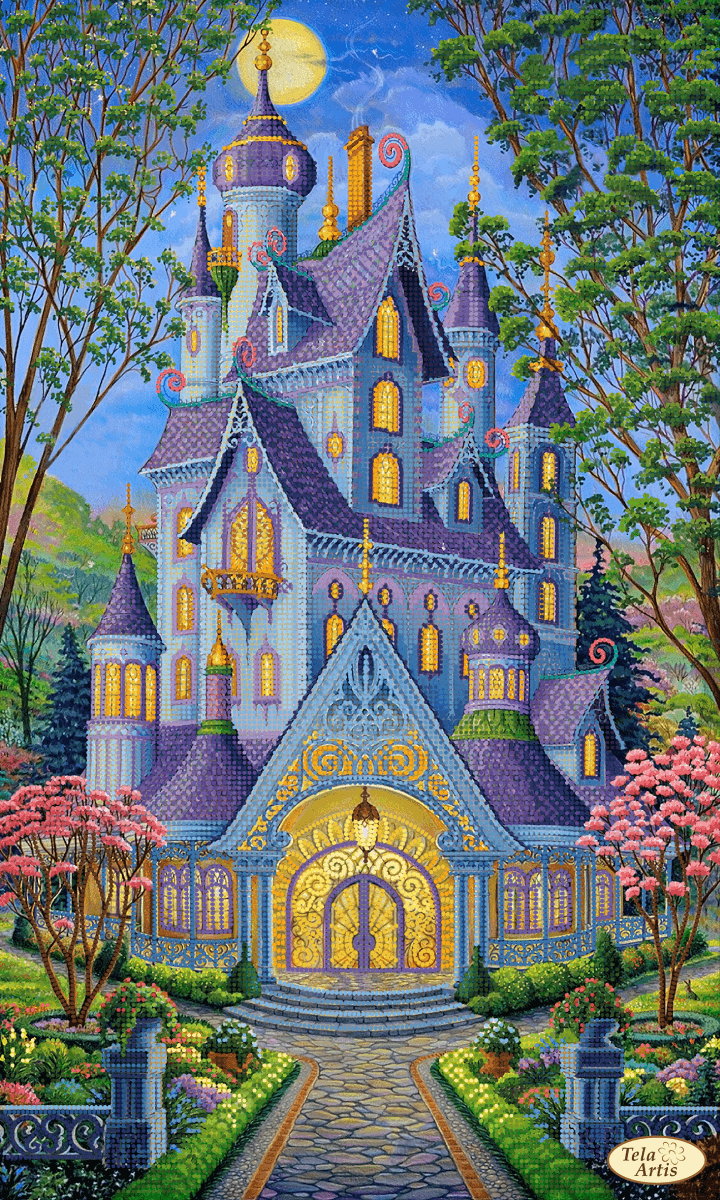 Схема для вышивания бисером Волшебный замок. Весна выполнена на плотном атласе, продублированном флизелином. Края всех схем Тэла Артис запаяны и не сыпятся в процессе вышивания. На схеме указаны количество и рекомендуемые цвета бисера Preciosa.