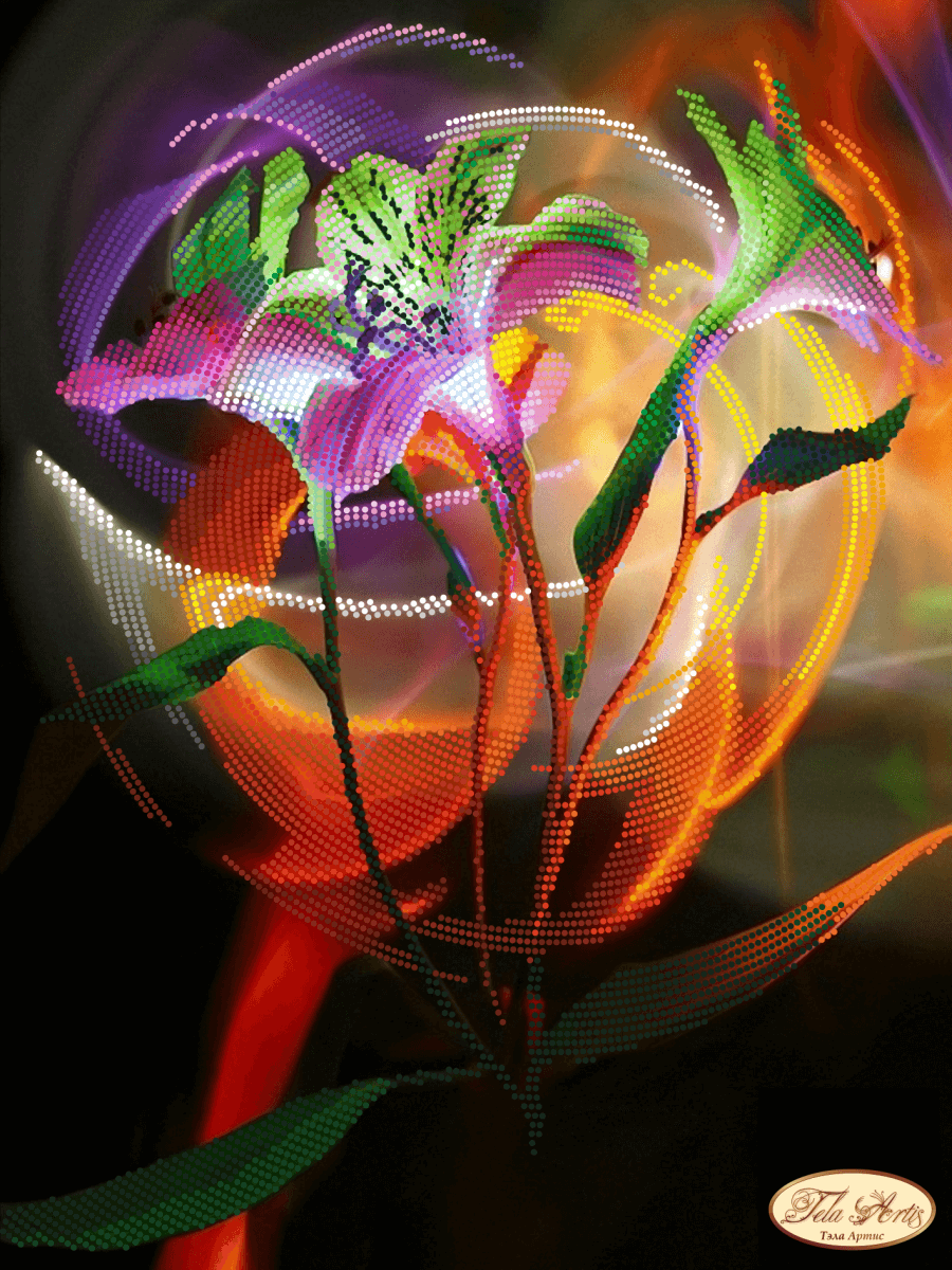 Схема для вышивания бисером В дымке выполнена на плотном атласе, продублированном флизелином. Края всех схем Тэла Артис запаяны и не сыпятся в процессе вышивания. На схеме указаны количество и рекомендуемые цвета бисера Preciosa.