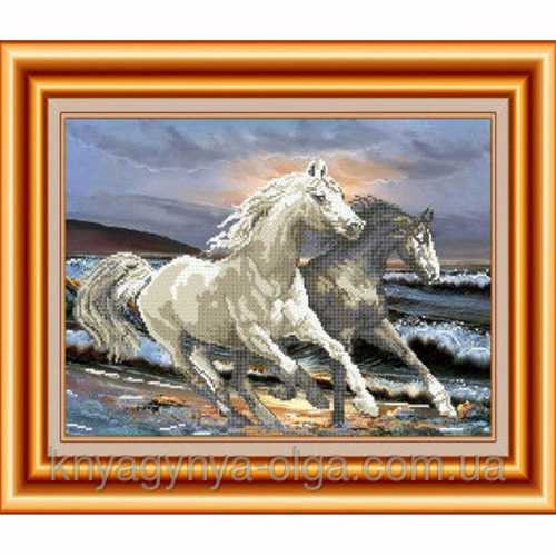 Схема для вышивки бисером с частичной зашивкой Галопом по хвилях ТМ Княгиня Ольга выполнена на атласной ткани. Каждая схема содержит рекомендуемое количество бисера, а также инструкцию по технике вышивки.