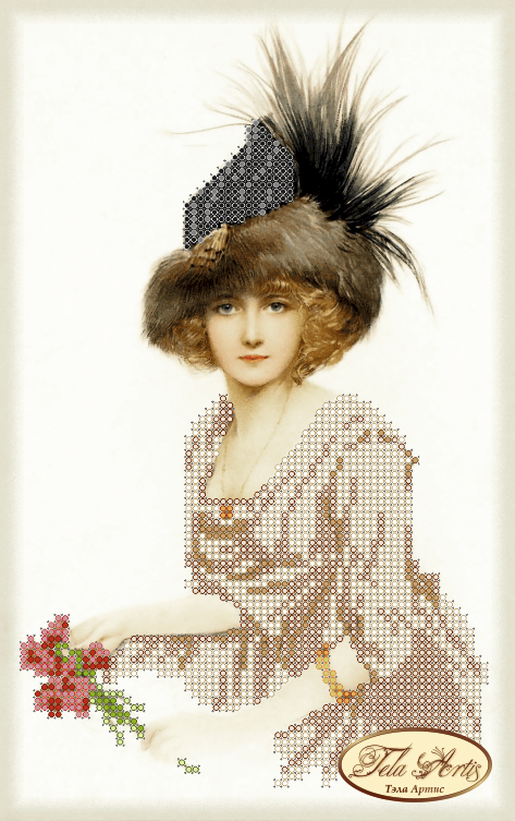 Схема для вышивки бисером Дама в меховой шляпке выполнена на плотном атласе, продублированном флизелином. Края всех схем Тэла Артис запаяны и не сыпятся в процессе вышивания. На схеме указаны количество и рекомендуемые цвета бисера Preciosa.