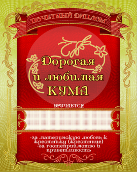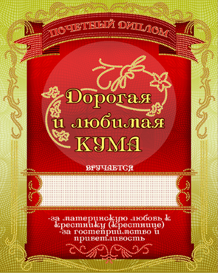 Схема для вышивания бисером Диплом «Дорогая и любимая кума», AK3-223, 32х26см, А-строчка