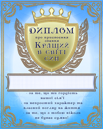 Схема для вышивания бисером Диплом «Кращий в світі син», AK3-233, 32х26см, А-строчка