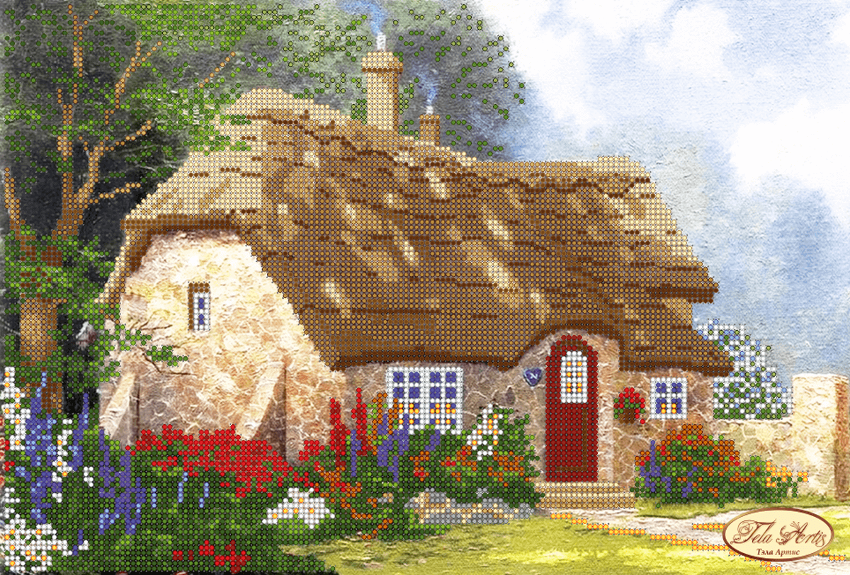 Схема для вышивания бисером Домик мечты. Лесная сказка выполнена на плотном атласе, продублированном флизелином. Края всех схем Тэла Артис запаяны и не сыпятся в процессе вышивания. На схеме указаны количество и рекомендуемые цвета бисера Preciosa.