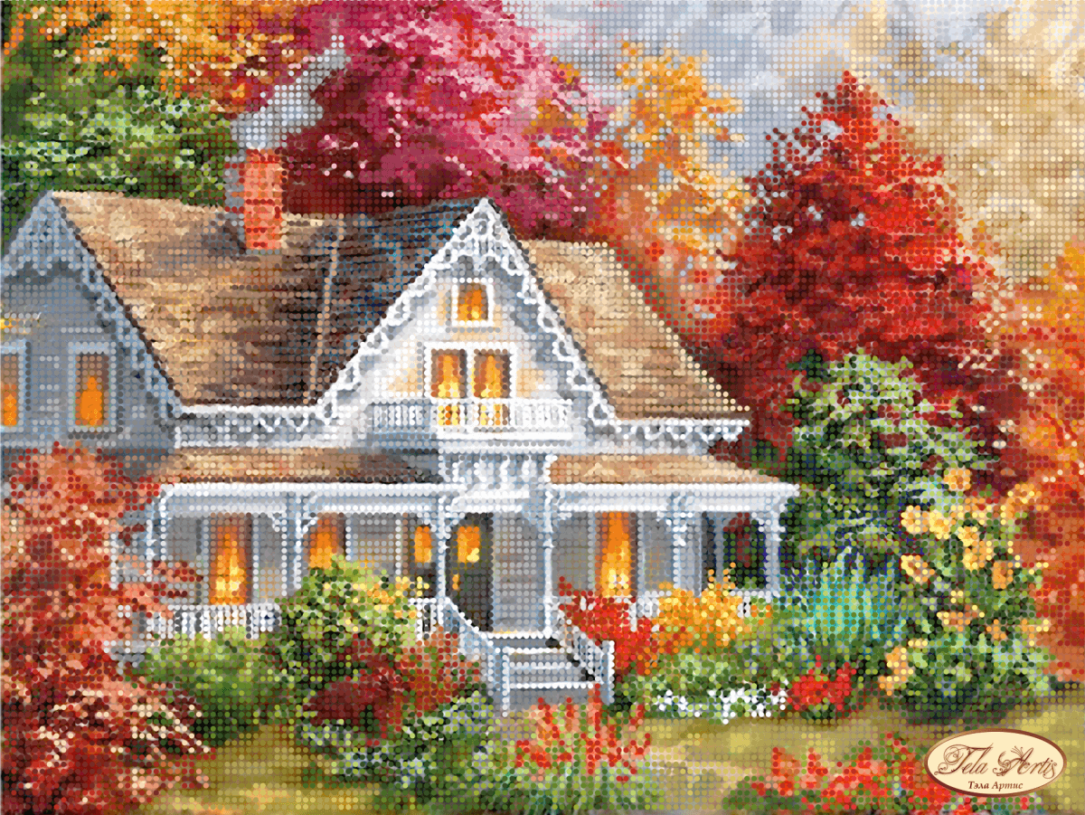 Схема для вышивания бисером Домик мечты. Семейное гнездышко выполнена на плотном атласе, продублированном флизелином. Края всех схем Тэла Артис запаяны и не сыпятся в процессе вышивания. На схеме указаны количество и рекомендуемые цвета бисера Preciosa.