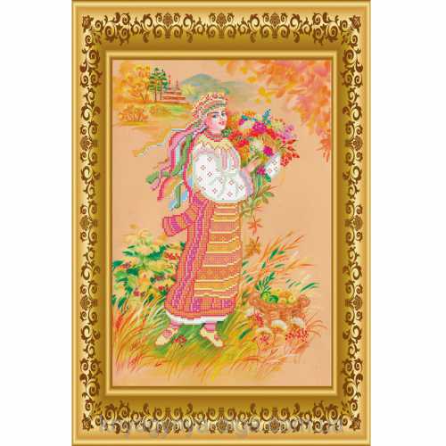Схема для вышивки бисером с частичной зашивкой Дівчина-Осінь ТМ Княгиня Ольга выполнена на атласной ткани. Каждая схема содержит рекомендуемое количество бисера, а также инструкцию по технике вышивки.