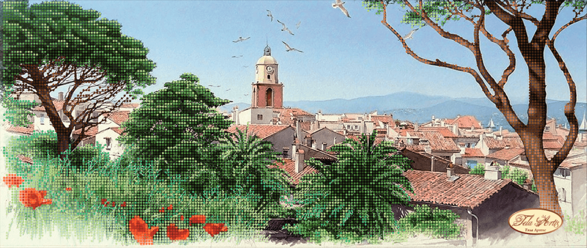 Схема для вышивания бисером Жаркий полдень выполнена на плотном атласе, продублированном флизелином. Края всех схем Тэла Артис запаяны и не сыпятся в процессе вышивания. На схеме указаны количество и рекомендуемые цвета бисера Preciosa.