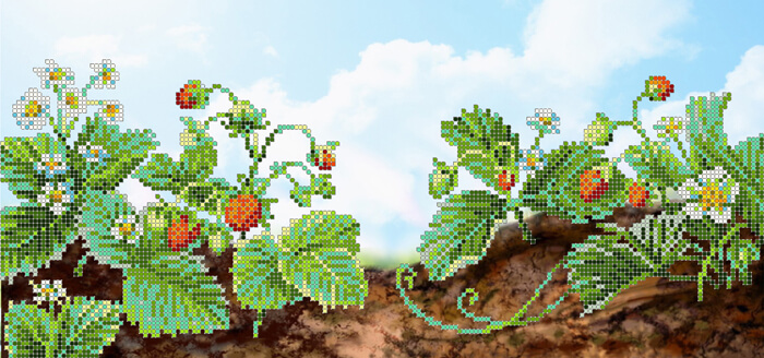 Схема для вышивки бисером Земляника ТМ Картины Бисером выполнена на высококачественном габардине. Каждая схема комплектуется инструкцией и картой рекомендованных цветов с указанием количества и веса бисера.