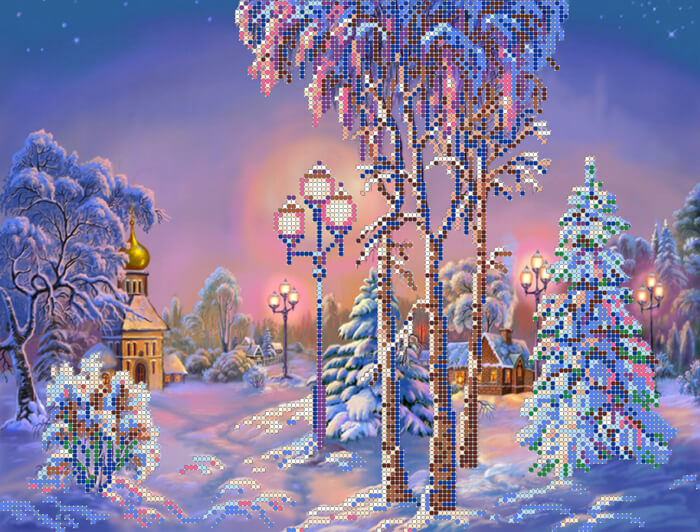 Схема для вышивки бисером Зимний вечер ТМ Картины Бисером выполнена на высококачественном габардине. Каждая схема комплектуется инструкцией и картой рекомендованных цветов с указанием количества и веса бисера.