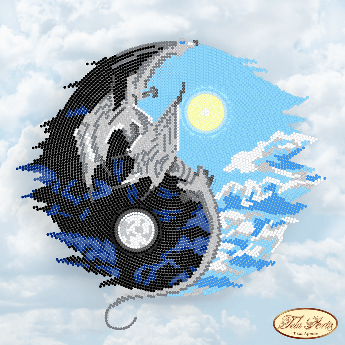 Схема для вышивания бисером Инь и Янь выполнена на плотном атласе, продублированном флизелином. Края всех схем Тэла Артис запаяны и не сыпятся в процессе вышивания. На схеме указаны количество и рекомендуемые цвета бисера Preciosa.