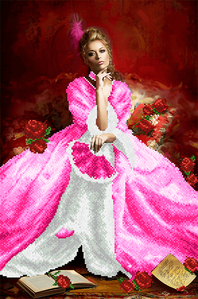 Схема для вышивания бисером Королева бала ТМ А-строчка выполнена из плотного атласа с нанесением яркой полноцветной печати высококачественными красками и содержит инструкцию.