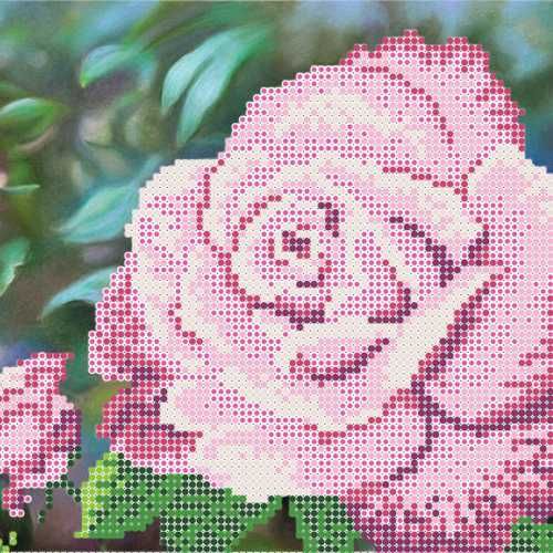 Схема для вышивки бисером на атласной ткани Королева сада Розовая киевского производителя Повитруля. На схеме указаны цвета и требуемое количество бисера (№10, Preciosa).