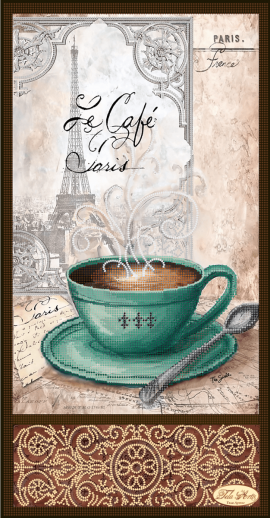 Схема для вышивания бисером Кофе в Париже - 2 выполнена на плотном атласе, продублированном флизелином. Края всех схем Тэла Артис запаяны и не сыпятся в процессе вышивания. На схеме указаны количество и рекомендуемые цвета бисера Preciosa.