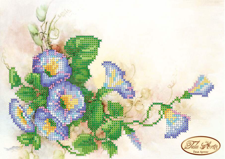 Схема для вышивания бисером Лазурь выполнена на плотном атласе, продублированном флизелином. Края всех схем Тэла Артис запаяны и не сыпятся в процессе вышивания. На схеме указаны количество и рекомендуемые цвета бисера Preciosa.