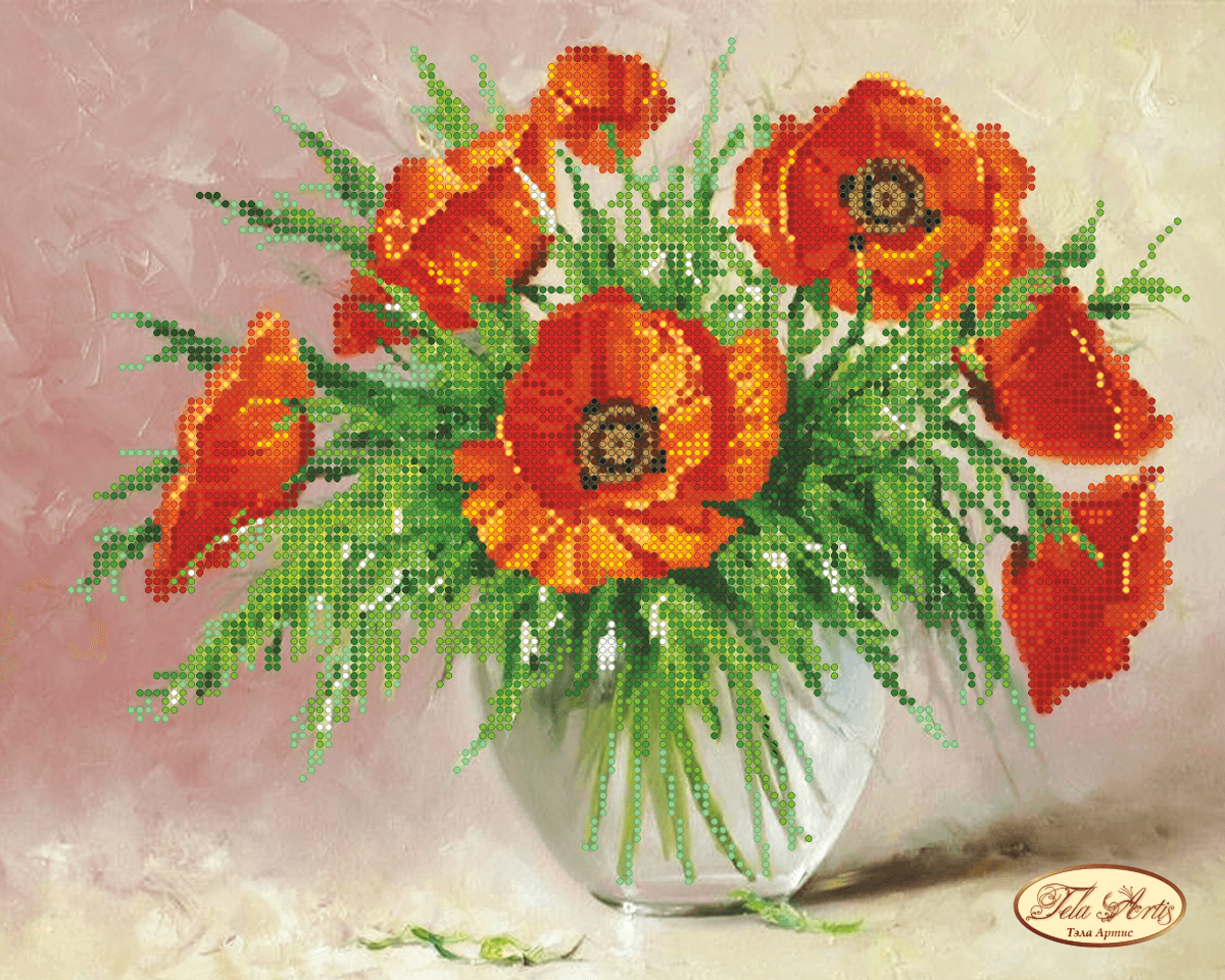 Схема для вышивания бисером Летний букет выполнена на плотном атласе, продублированном флизелином. Края всех схем Тэла Артис запаяны и не сыпятся в процессе вышивания. На схеме указаны количество и рекомендуемые цвета бисера Preciosa.