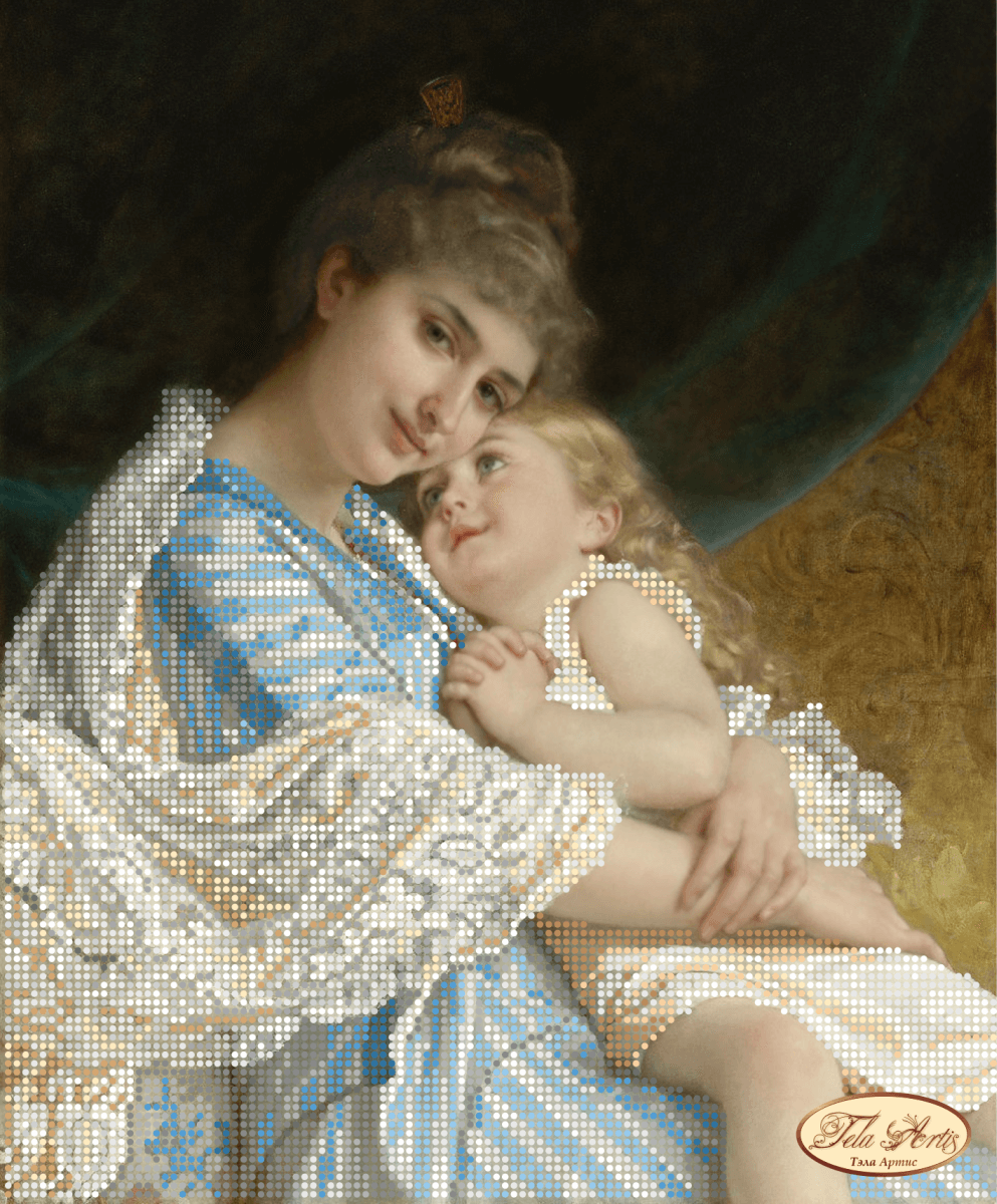 Схема для вышивания бисером Мама и дочка выполнена на плотном атласе, продублированном флизелином. Края всех схем Тэла Артис запаяны и не сыпятся в процессе вышивания. На схеме указаны количество и рекомендуемые цвета бисера Preciosa.