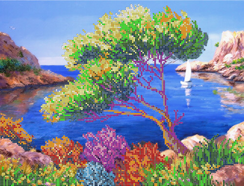 Схема для вышивки бисером Морской пейзаж ТМ Картины Бисером выполнена на высококачественном габардине. Каждая схема комплектуется инструкцией и картой рекомендованных цветов с указанием количества и веса бисера.