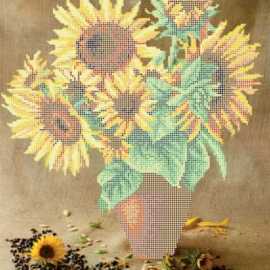 Схема для вышивки бисером на атласной ткани Натюрморт с подсолнухами киевского производителя Повитруля. На схеме указаны цвета и требуемое количество бисера (№10, Preciosa).