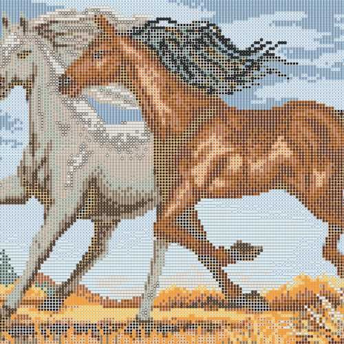 Схема для вышивки бисером на атласной ткани На бегу киевского производителя Повитруля. На схеме указаны цвета и требуемое количество бисера (№10, Preciosa).