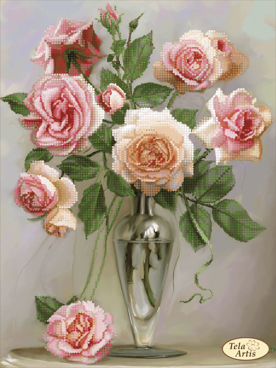 Схема для вышивания бисером Нежность в бутонах выполнена на плотном атласе, продублированном флизелином. Края всех схем Тэла Артис запаяны и не сыпятся в процессе вышивания. На схеме указаны количество и рекомендуемые цвета бисера Preciosa.