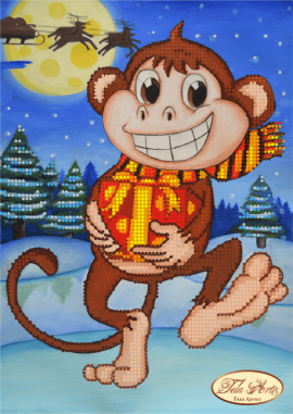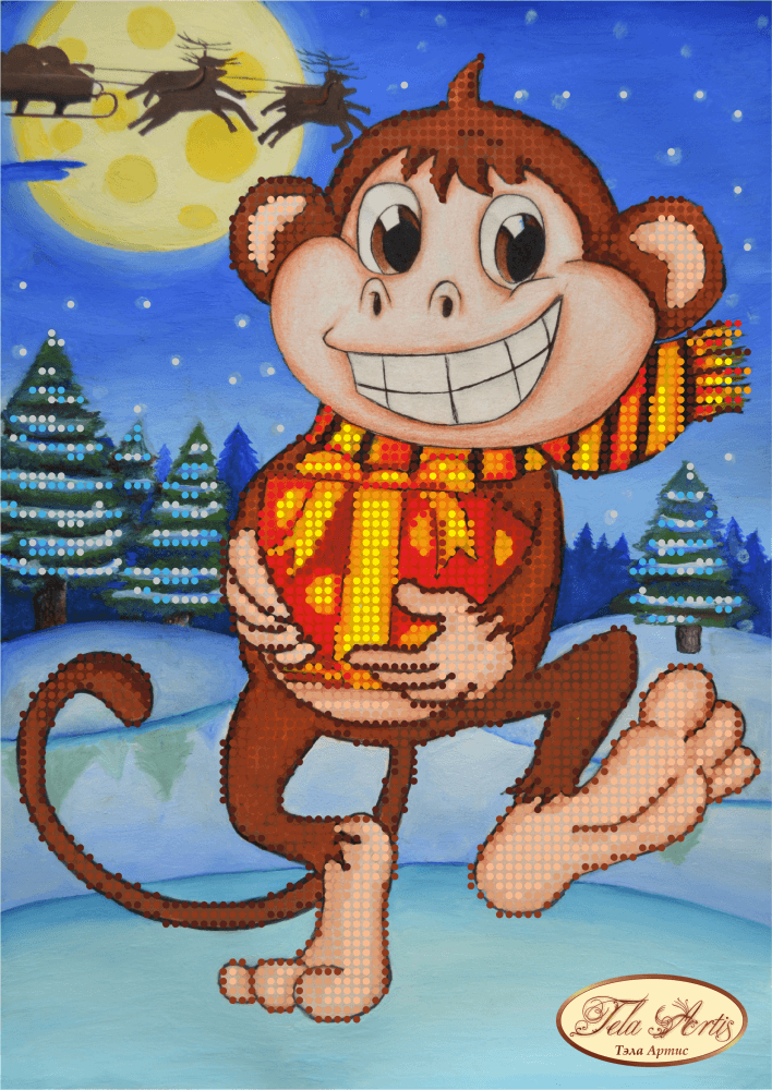 Схема для вышивания бисером Обезьянка с подарком, ТМ-056, 17х24см, Тэла Артис