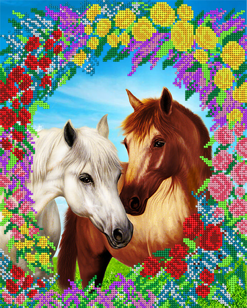 Схема для вышивания бисером Пара лошадей, AK3-068, 32х26см, А-строчка