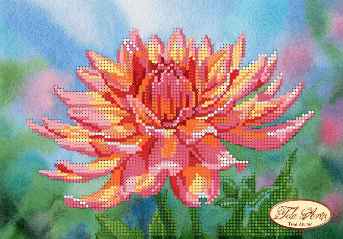 Схема для вышивания бисером Пламенный цветок выполнена на плотном атласе, продублированном флизелином. Края всех схем Тэла Артис запаяны и не сыпятся в процессе вышивания. На схеме указаны количество и рекомендуемые цвета бисера Preciosa.