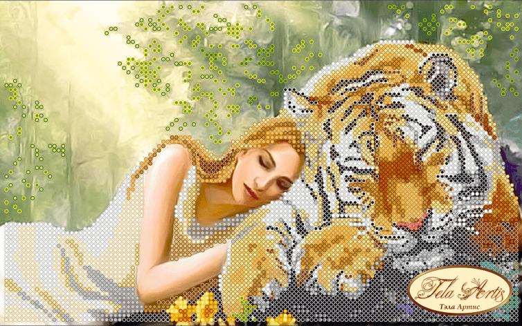 Схема для вышивания бисером Полуденный сон выполнена на плотном атласе, продублированном флизелином. Края всех схем Тэла Артис запаяны и не сыпятся в процессе вышивания. На схеме указаны количество и рекомендуемые цвета бисера Preciosa.