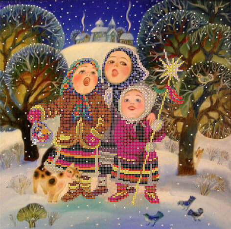 Схема для вышивки бисером Рождественские колядки ТМ Картины Бисером выполнена на высококачественном габардине. Каждая схема комплектуется инструкцией и картой рекомендованных цветов с указанием количества и веса бисера.