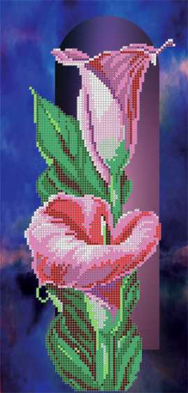 Схема для вышивки бисером Розовые каллы ТМ Картины Бисером выполнена на высококачественном габардине. Каждая схема комплектуется инструкцией и картой рекомендованных цветов с указанием количества и веса бисера.