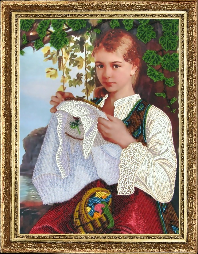 Схема для вышивки бисером с частичной зашивкой Рукодельница, арт. bfs430, ТМ Butterfly выполнена на атласе.