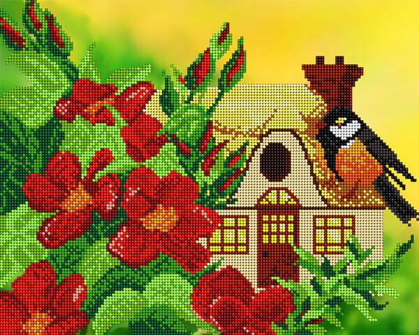 Схема для вышивания бисером Синичкин домик ТМ А-строчка выполнена из плотного атласа с нанесением яркой полноцветной печати высококачественными красками и содержит инструкцию.