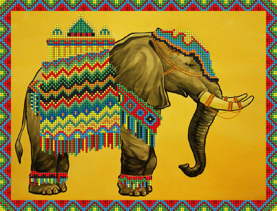 Схема для вышивания бисером Слон Махараджи ТМ А-строчка выполнена из плотного атласа с нанесением яркой полноцветной печати высококачественными красками и содержит инструкцию.