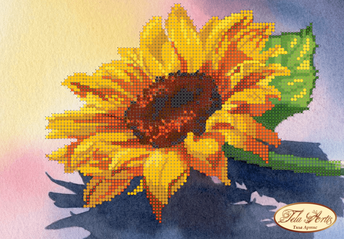 Схема для вышивания бисером Солнечный цветочек выполнена на плотном атласе, продублированном флизелином. Края всех схем Тэла Артис запаяны и не сыпятся в процессе вышивания. На схеме указаны количество и рекомендуемые цвета бисера Preciosa.