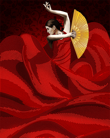 Схема для вышивания бисером Танец страсти ТМ А-строчка выполнена из плотного атласа с нанесением яркой полноцветной печати высококачественными красками и содержит инструкцию.