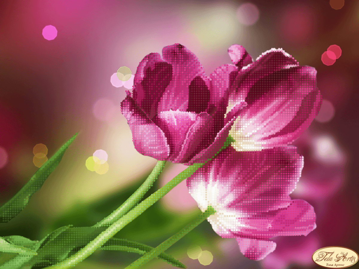 Схема для вышивания бисером Тюльпаны Каравелла выполнена на плотном атласе, продублированном флизелином. Края всех схем Тэла Артис запаяны и не сыпятся в процессе вышивания. На схеме указаны количество и рекомендуемые цвета бисера Preciosa.