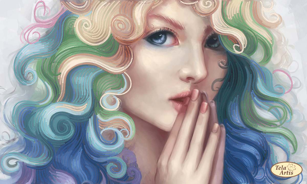 Схема для вышивания бисером Фантазерка выполнена на плотном атласе, продублированном флизелином. Края всех схем Тэла Артис запаяны и не сыпятся в процессе вышивания. На схеме указаны количество и рекомендуемые цвета бисера Preciosa.