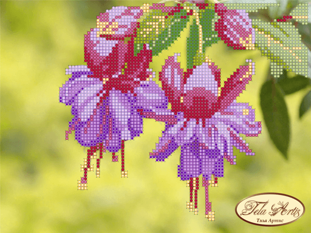 Схема для вышивки бисером Цветущая фуксия выполнена на плотном атласе, продублированном флизелином. Края всех схем Тэла Артис запаяны и не сыпятся в процессе вышивания. На схеме указаны количество и рекомендуемые цвета бисера Preciosa.