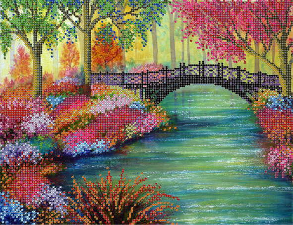 Схема для вышивки бисером Цветущие берега ТМ Картины Бисером выполнена на высококачественном габардине. Каждая схема комплектуется инструкцией и картой рекомендованных цветов с указанием количества и веса бисера.