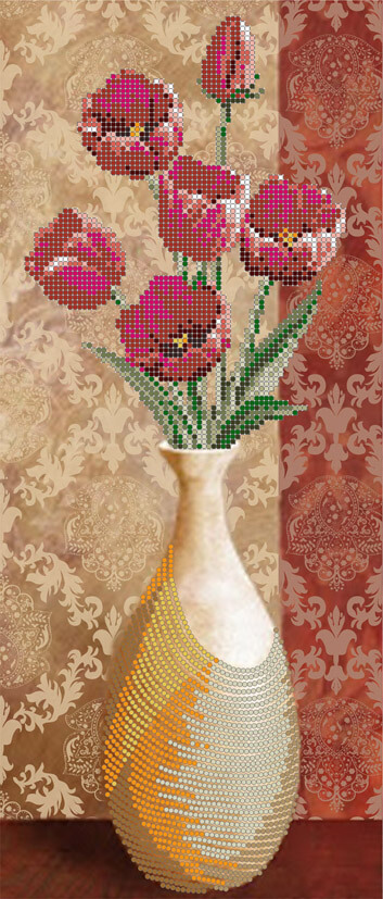 Схема для вышивки бисером Цветы в вазе - 1 ТМ Картины Бисером выполнена на высококачественном габардине. Каждая схема комплектуется инструкцией и картой рекомендованных цветов с указанием количества и веса бисера.