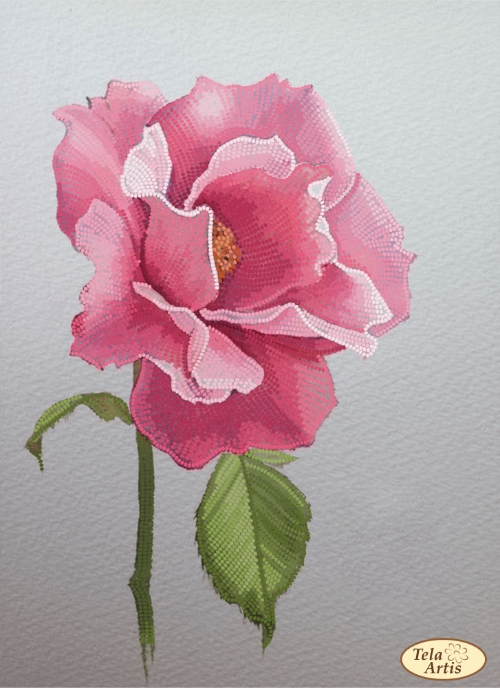 Схема для вышивки бисером Эскиз розы выполнена на плотном атласе, продублированном флизелином. Края всех схем Тэла Артис запаяны и не сыпятся в процессе вышивания. На схеме указаны количество и рекомендуемые цвета бисера Preciosa.